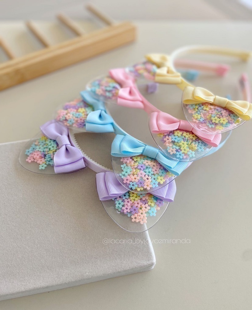 Orelhinhas transparente com confetes de florzinhas candy colors.