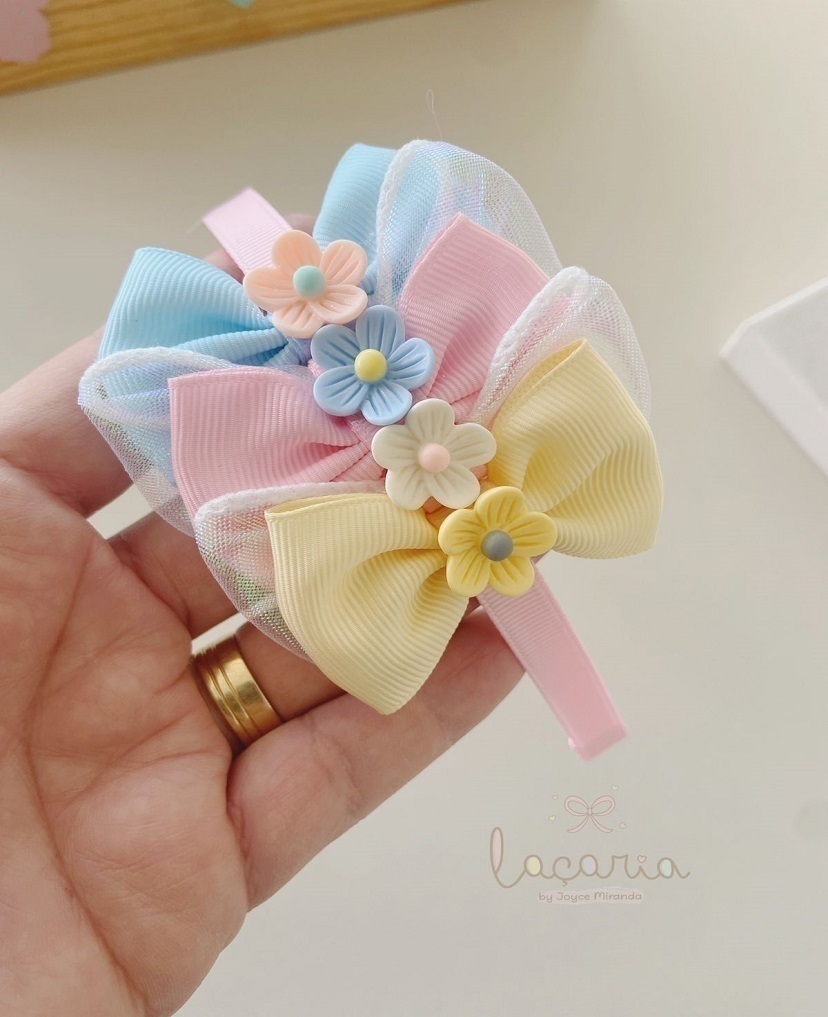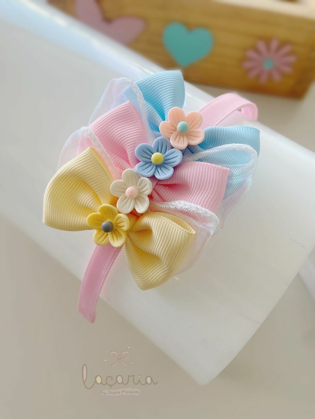 Lacinhos com 6cm nos tons candy e intercalados com lacinhos holográficos.