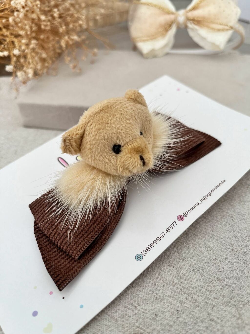 Veludo cotelê marrom com o detalhe mais charmoso... rostinho do urso e pompom pelinho
