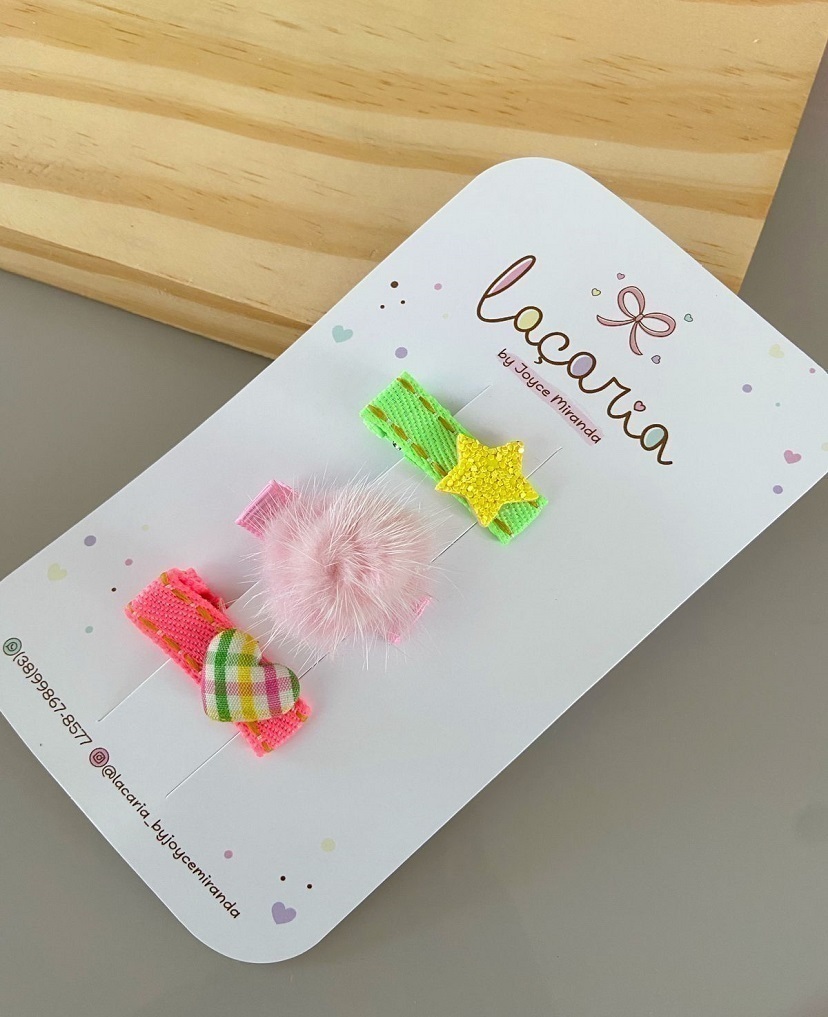Cartela com mini presilhas baby.