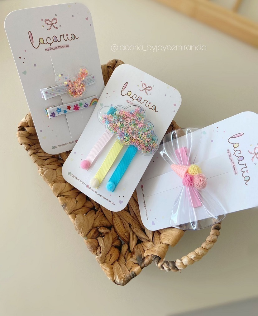 Laço transparente com sorvetinho - bico de pato 6,5cm