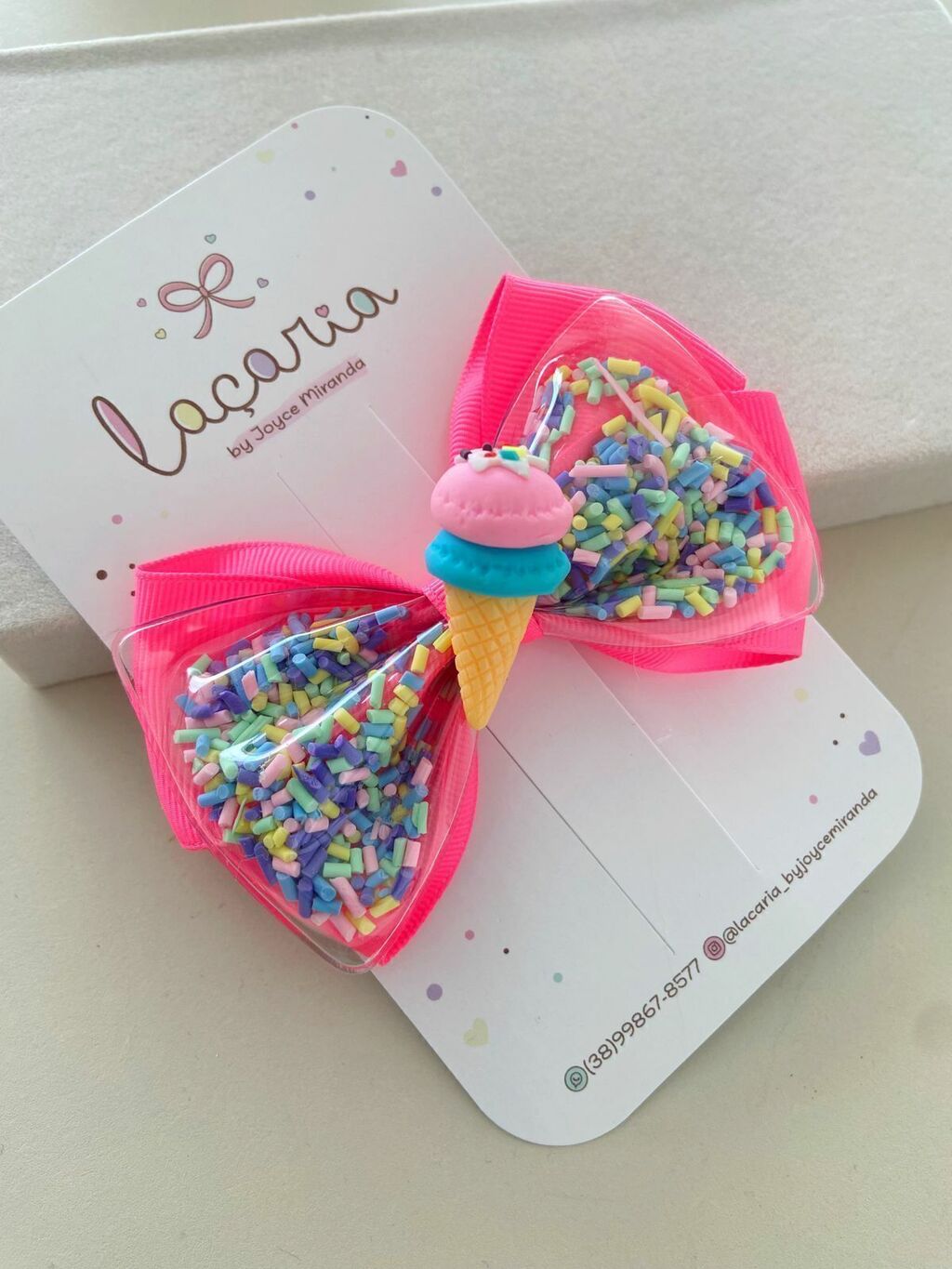 Laço médio (10cm) sobreposto laço de piscina transparente com confetes.