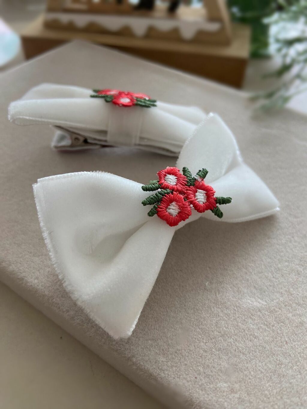Duplinhalaço veludo com detalhe de florzinha