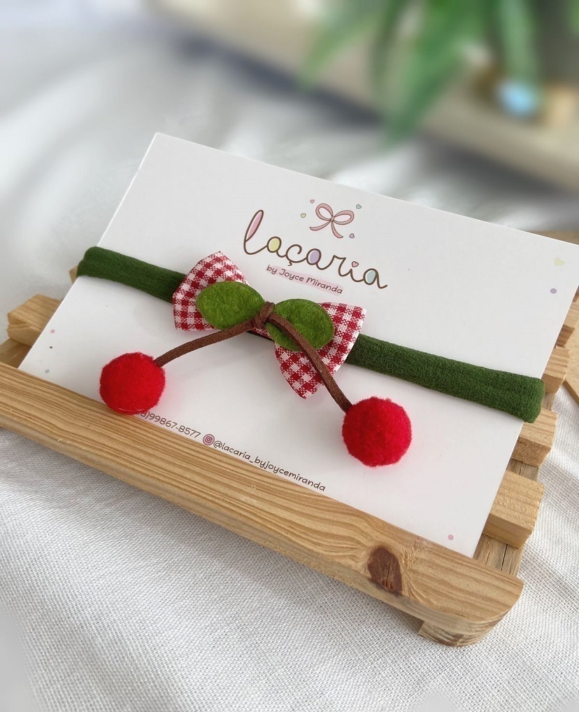 Laço em tecido xadrez com detalhe em cerejinha.