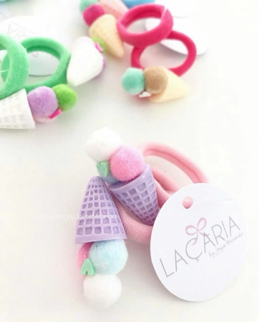 Mini xuxinha (podendo alterar a cor do elástico e dos pompons)